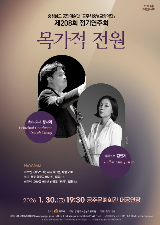 [파이낸셜경제=김영란 기자] 충청남도 공립예술단 공주시충남교향악단은 오는 1월 30일19시 30분, 공주문예회관 대공연장에서 ‘목가적 전원’을 부제로 2026년 시즌의 첫 정기공연의 문을 연다.