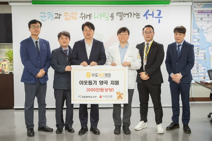 [파이낸셜경제=김기보 기자] 인천 서구는 지난 16일 바로서구병원(대표원장 유범석·김훈철)으로부터 취약계층 지원을 위한 양곡(500만 원 상당)을 전달받았다고 밝혔다.