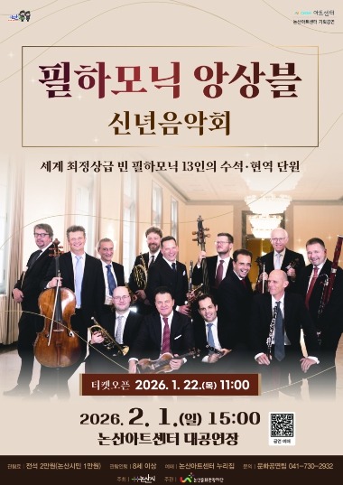 [파이낸셜경제=김영란 기자] (재)논산문화관광재단은 오는 2월 1일 오후 3시, 논산아트센터 대공연장에서‘필하모닉 앙상블 신년음악회’를 개최한다고 전했다.