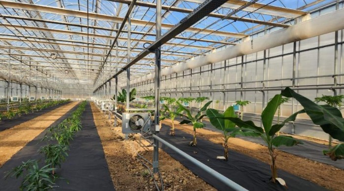 | ▲ 영천시 아열대 스마트팜단지 내 재배실증 중인 애플망고, 바나나, 파파야 |