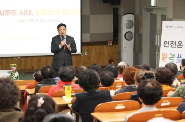 이번 특강에서 도성훈 인천광역시교육감은 ‘AI 주도 시대, 읽걷쓰가 답이다’를 주제로, AI시대를 살아가는 데 필요한 학습력과 건강을 함께 길러야 한다고 강조하며 평생학습의 중요성을 역설했다.