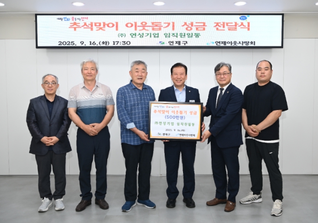 [파이낸셜경제=박영진 기자] 연제구는 9월 16일 추석 명절을 맞아 (주)연성기업(대표 조승배)으로부터 저소득 세대를 위한 이웃돕기 성금 500만 원을 전달받았다.