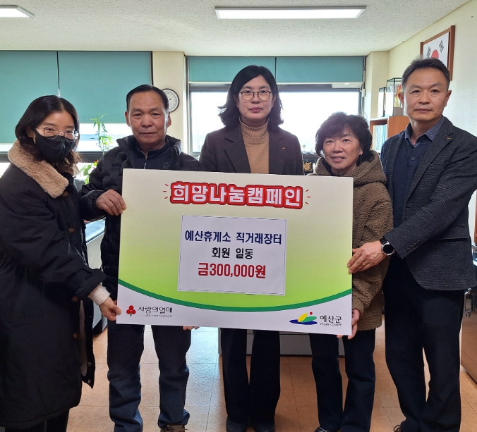 [파이낸셜경제=김영란 기자] 예산군은 예산휴게소 직거래장터 대신회 회원들이 지역사회 소외된 이웃을 돕기 위해 예산군에 ‘희망 2026 나눔 캠페인’ 성금 30만원을 기탁하며 따뜻한 나눔을 실천했다고 16일 밝혔다.
