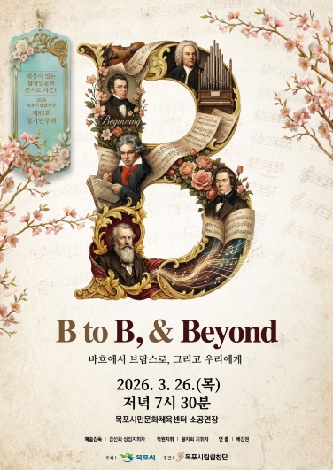 [파이낸셜경제=김예빈 기자] 목포시립합창단(예술감독 겸 상임지휘자 김선희)이 오는 3월 26일 오후 7시 30분, 목포시민문화체육센터 소공연장에서 제83회 정기연주회 'B to B & Beyond(Bach to Brahms) : 해설이 있는 합창인문학콘서트 시즌1'을 개최한다.