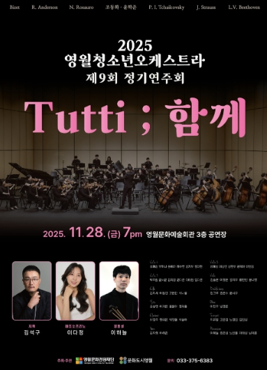 [파이낸셜경제=조성환 기자] (재)영월문화관광재단은 오는 11월 28일 오후 7시, 영월문화예술회관 3층에서 ‘2025 영월청소년오케스트라 제9회 정기연주회 'Tutti : 함께'’를 개최한다고 밝혔다.