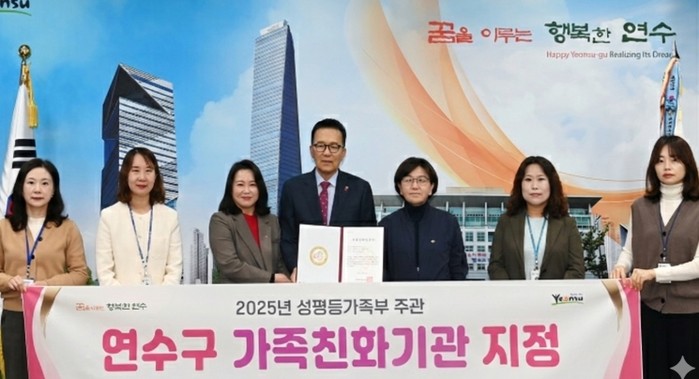 연수구는 2014년 첫 인증을 받은 이후 2017년 유효기간 연장, 2019년과 2022년 재인증에 이어 2025년 재인증(3회)받으며, 오는 2028년 11월까지 5회 연속 가족친화기관 자격을 유지하게 된다.