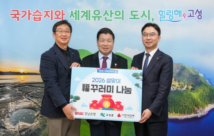 [파이낸셜경제=김예빈 기자] 고성군은 임재문 BNK경남은행 서부영업그룹부행장이 1월 26일 고성군청을 방문하여 관내 어려운 이웃을 위해 써 달라며 450만 원 상당의 ‘설날맞이 복꾸러미’(식료품세트 18종) 100박스를 전달했다고 밝혔다.