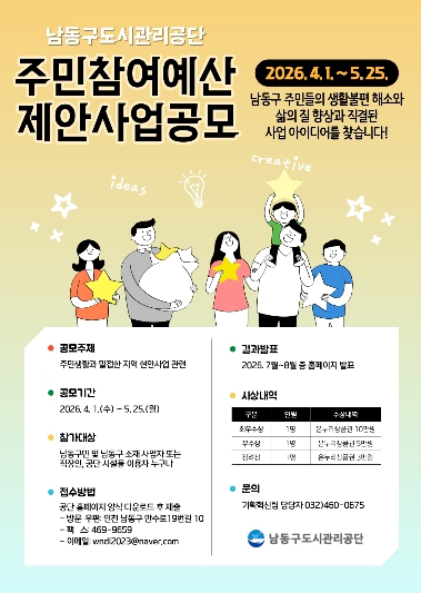 | ▲ 남동구도시관리공단, 2026년 주민참여예산 제안사업 공모 실시 |