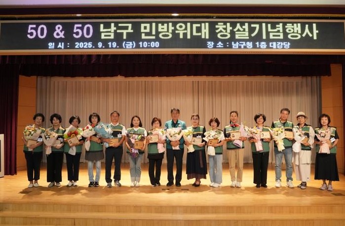 오은택 남구청장은 기념사를 통해 “남구청 개청 50주년과 민방위대 창설 50주년을 함께 축하드린다”며 “그간 민방위대의 헌신과 노고에 깊이 감사드리며 앞으로도 우리 구의 ‘안보지킴이’라는 자긍심을 갖고 민방위 임무에 최선을 다해주시길 바란다”고 당부했다.