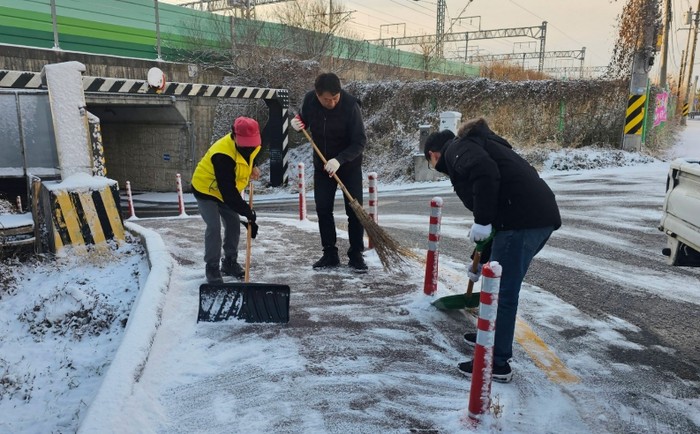 대설주의보가 해제된 이후에는 ‘도로 살얼음(블랙아이스)’으로 인한 안전사고가 발생하지 않도록, 새벽 시간에 살포기, 굴삭기 등 장비를 동원한 제거 작업을 집중적으로 진행했다.