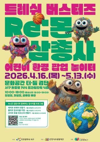 [파이낸셜경제=김기보 기자] (재)인천서구문화재단은 오는 4월 16일부터 5월 13일까지 문화공간 터·틀(검단)에서 어린이 환경 체험 전시 ‘트레쉬 버스터즈: Re:몬 삼총사 - 어린이 환경 팝업 놀이터’를 개최한다.