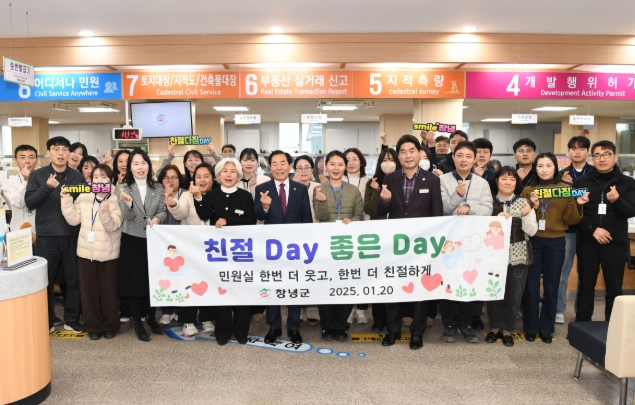 [파이낸셜경제=김예빈 기자] 창녕군은 1월 20일 민원봉사과 전 직원을 대상으로 ‘친절․청렴 다짐 데이’를 실시하고 군민에게 신뢰받는 행정서비스 제공을 위한 친절 실천 의지를 재확인했다.