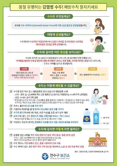 | ▲ 연수구보건소, 수두 환자 증가에 따라 감염예방 수칙 준수 당부등교 전 건강 상태 확인 필수, 수포 딱지 앉을 때까지 가정 내 격리 당부 |