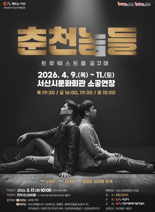 정동호 서산시 문화시설사업소장은 “연극 ‘춘천놈들’은 꿈을 좇는 청춘들의 이야기 속에서 현실의 고민과 우정의 의미를 진솔하게 담아낸 작품”이라며 “시민들이 공감과 감동을 함께 느낄 수 있는 시간이 되길 바란다”라고 말했다.