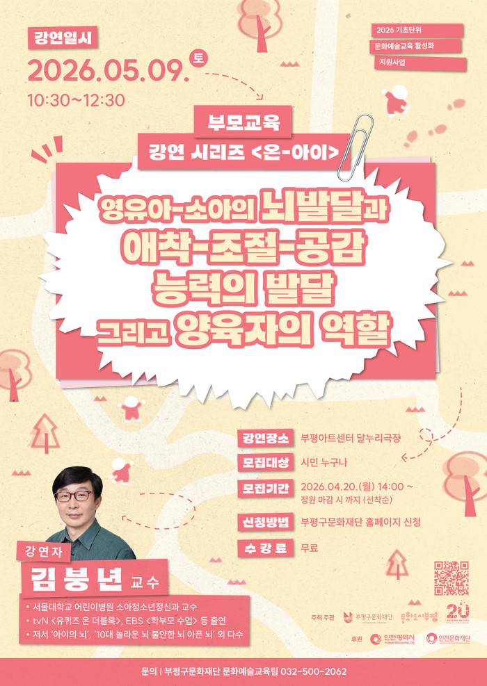[파이낸셜경제=김기보 기자] 부평구문화재단은 오는 5월 9일 어린이 주간과 연계해 부평아트센터 달누리극장에서 부모교육 강연 시리즈 ‘온-아이’를 개최한다.