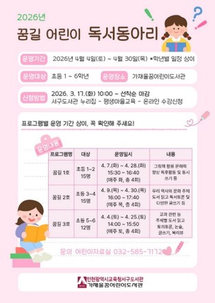 프로그램은 4월 2일부터 29일까지 운영되며, 참여 신청은 3월 16일 오전 10시부터 평생학습관 누리집에서 진행된다.
