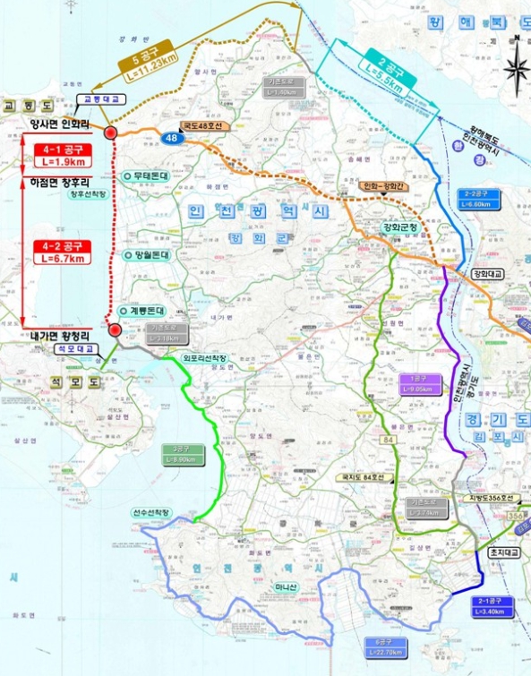 이에 강화군은 이달부터 인천광역시와 긴밀히 협업해 자체 예산을 투입, ‘내가면 황청리~하점면 창후리’ 구간에 대한 사전 타당성 조사 용역을 선제적으로 추진하며 사업 정상화의 물꼬를 튼다.