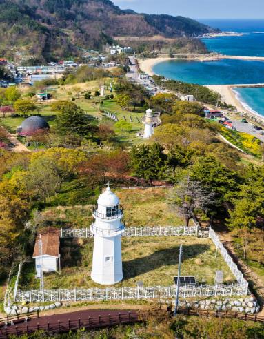 후포리벽화마을을 천천히 즐기고, 계단을 통해 등기산을 오르면 세계 유명 등대를 축소한 조형물과 신석기 유적관이 있는 등기산 공원을 둘러볼 수 있다.