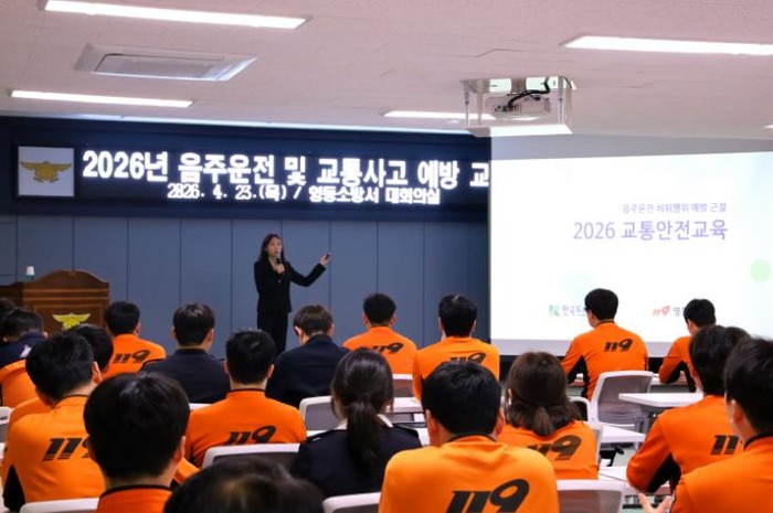 교육은 지난 23일 영동소방서에서 진행됐으며, 한국도로교통공단 유승민 교수를 초빙해 실제 사례를 중심으로 음주운전의 위험성과 교통사고 예방 요령 등을 교육했다.