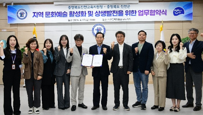 [파이낸셜경제=김기보 기자] 충청북도진천교육지원청과 진천군은 4월 17일 지역 문화예술 활성화 및 상생발전을 위한 업무협약(MOU)을 체결했다.