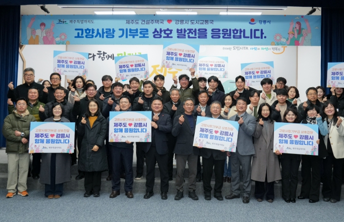 박재관 제주도 건설주택국장은 “강릉시는 관광객이 많은 도시로 제주와 공통점이 많고, 제설작업 등 건설 분야에서도 벤치마킹할 부분이 많은 지역”이라며 “이번 상호 기부가 양 지역의 상생협력은 물론 고향사랑기부제 확산에도 기여하길 기대한다”고 말했다.