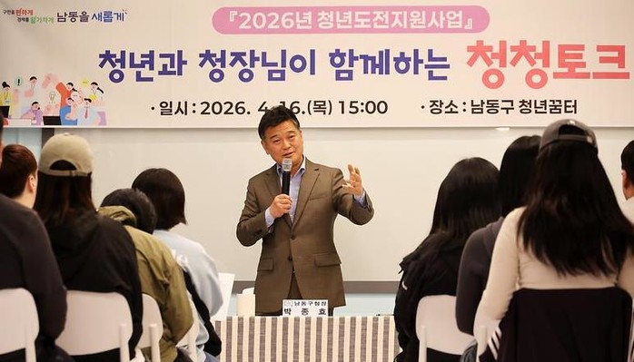[파이낸셜경제=김기보 기자] 인천시 남동구는 최근 남동구 청년꿈터에서 박종효 구청장과 청년도전지원사업 참여자들이 함께하는 ‘청청토크’를 개최했다고 21일 밝혔다.