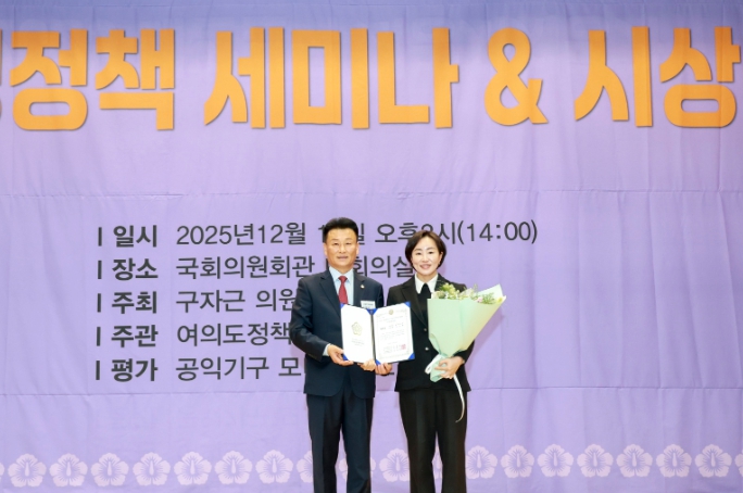 [파이낸셜경제=김지훈 기자] 경주시의회 김소현 의원이 지난 19일 국회의원회관 대회의실에서 열린 ‘2025 지방자치 평가 의정·정책 대상’ 시상식에서 우수상을 수상하며 지난해 최우수상에 이어 2년 연속으로 수상하는 영예를 안았다.