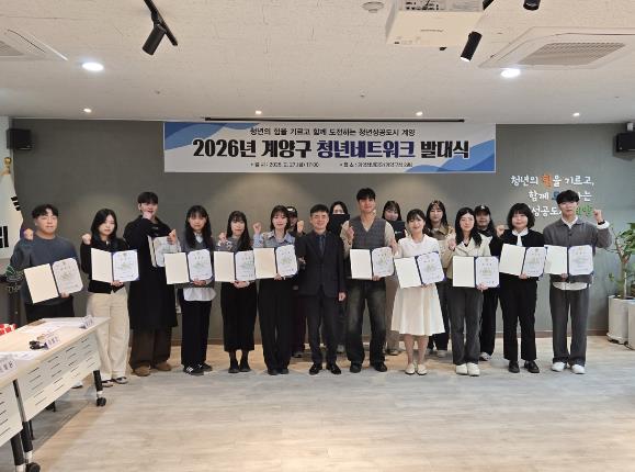 구 관계자는 “계양청년네트워크가 계양의 청년을 대표하는 정책 파트너로 성장하길 기대한다.”라며 “청년들이 체감할 수 있는 변화를 만들 수 있도록 최선을 다하겠다.”라고 말했다.