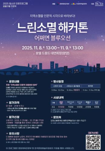 재단 관계자는 “이번 해커톤은 청년 세대가 인문사회적 역량을 십분 발휘할 수 있는 기회”라며, “지역소멸 문제를 넘어 다양한 지역사회 현안에 대해 고찰하고 실제 지역문제에 적용할 수 있는 혁신적인 아이디어로 이어지길 바란다.”고 전했다.