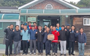 ▲ 10월 20일 강원특별자치도 철원군에 위치한 ‘철원군병영체험수련원’에서 실시된 ‘햇빛·행복·행복 나눔 70kW 태양광 발전소 착공식’에서 관계자들이 단체 기념 촬영을 하고 있다. |