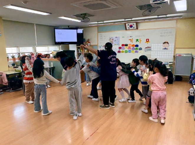 지난 14일 인천창영초등학교 1학년을 대상으로 운영된 ‘신나는 놀이터’ 프로그램에서는 대문 놀이, 줄 놀이, 실 놀이 등 전통 놀이 활동이 펼쳐져, 학생들이 협동심과 공동체 의식을 함양하는 계기가 됐다.