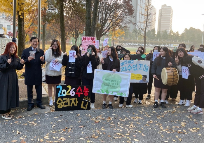 [파이낸셜경제=김기보 기자] 2026학년도 대학수학능력시험이 13일 오전 8시 40분부터 전국적으로 일제히 치러지는 가운데, 충주시에서도 수험생들의 합격을 기원하는 응원의 열기가 뜨겁다.