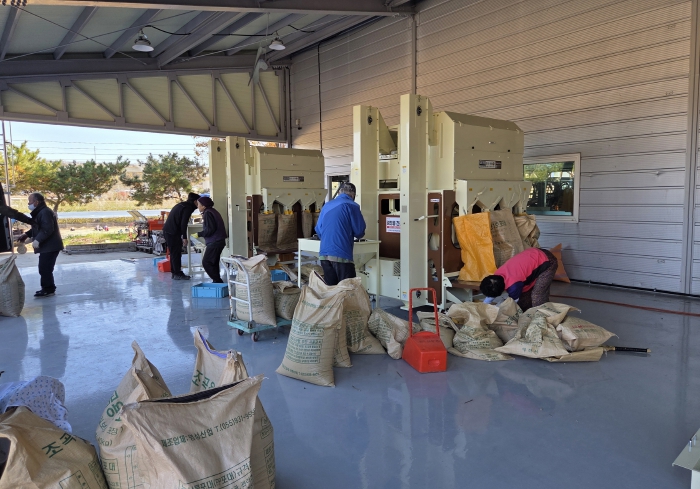 농기계임대사업소 관계자는 “콩을 충분히 건조시키고 잡초, 콩깍지, 콩줄기 등 이물질을 미리 제거하면 정선 작업 속도가 훨씬 빨라진다”고 안내했다.