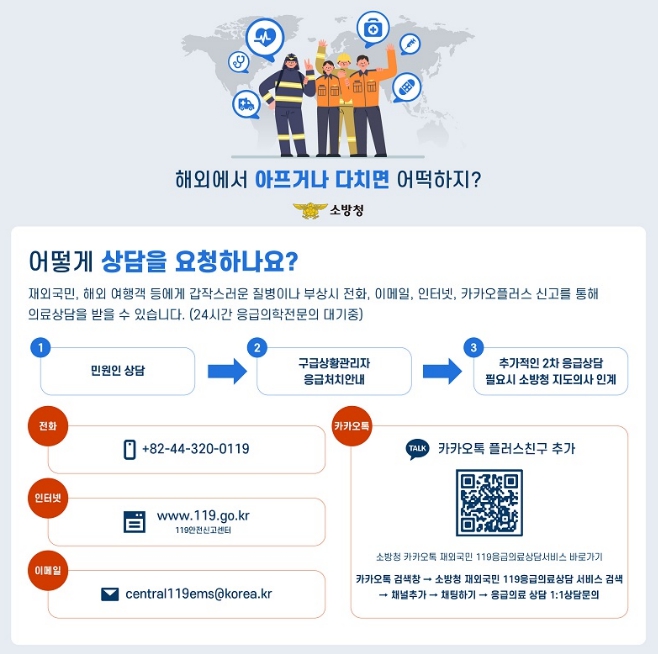이 서비스는 해외여행객과 유학생뿐만 아니라 선박·항공 종사자 및 재외동포 등 누구나 이용 가능하며, 병원 방문 전 응급처치 요령 안내와 복약지도 등 실질적인 도움을 받을 수 있다.