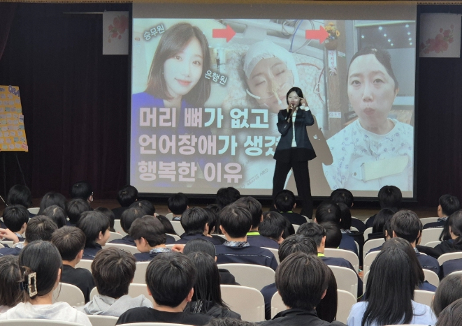 특히, 예기치 못한 사고로 뇌의 90%가 손상되는 큰 시련을 겪고도 이를 극복해 낸 기적 같은 사연을 전해 참석한 학생 및 학부모들에게 진한 감동을 자아냈다.