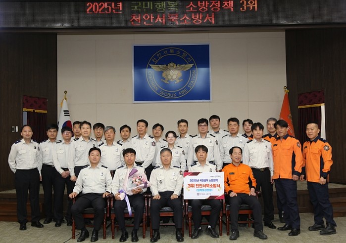[파이낸셜경제=김영란 기자] 천안서북소방서(서장 최길재)는 2025년도 국민행복 소방정책 종합평가에서 도내 3위를 달성하는 우수한 성과를 거뒀다고 밝혔다. 국민행복 소방정책 평가는 화재 예방, 구조·구급, 현장 대응, 안전문화 확산 등 소방행정 전반을 종합적으로 평가하는 지표로, 도내 각 소방관서의 정책 추진 역량을 가늠 할수 있는 중요한 평가다.