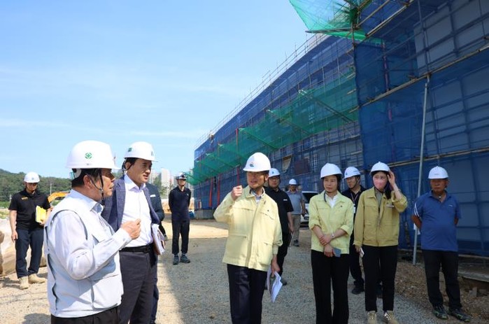 | ▲ 천창수 교육감과 교육청 직원들이 지난해 7월 23일 서사초 공사현장을 찾아 시설물 안전점검을 진행했다 |