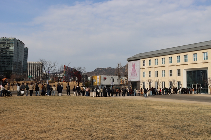 금기숙 기증특별전은 ‘2026년 화제의 전시’로 주목받으며 전시 기간 내내 관람객의 발길이 끊이지 않았다. 개관 시간 전부터 대기 행렬이 이어지는 이른바 ‘오픈런’ 현상이 나타났고, 운영 시간 중에도 입장 대기가 지속됐다. 일일 최다 관람객 수 31,679명을 기록하기도 했다.