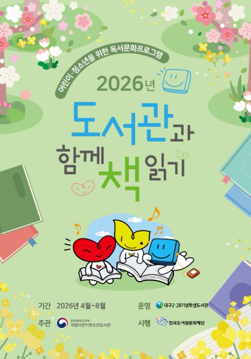 [파이낸셜경제=김지훈 기자] 대구2·28기념학생도서관은 국립어린이청소년도서관이 주최한 '2026년 도서관과 함께 책 읽기' 공모사업에 선정되어, 정보취약계층 어린이를 위한 맞춤형 독서문화 프로그램을 운영한다.