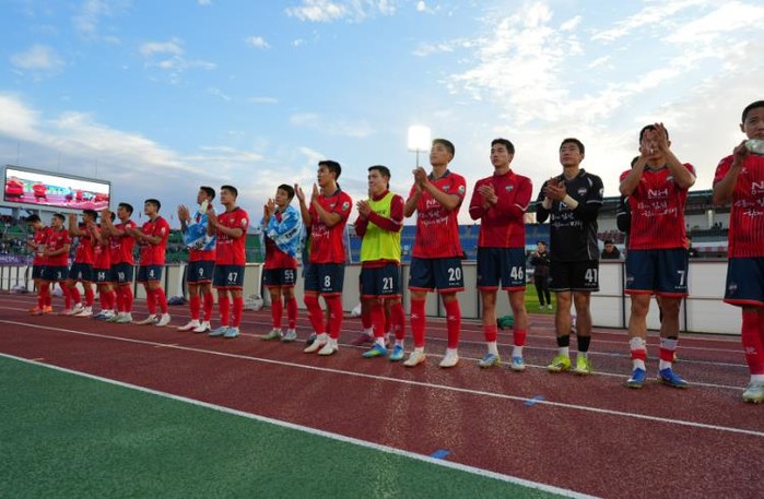 | ▲ 4월 12일 안양전 홈경기에서 김천상무 선수단이 경기 후 홈관중에게 인사하고 있다 |