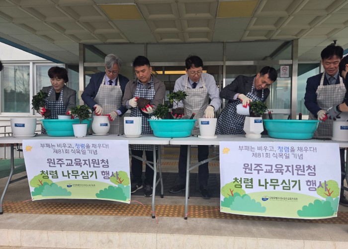 [파이낸셜경제=조성환 기자] 강원특별자치도원주교육지원청은 4월 6일 오전 9시 30분, 원주교육지원청 청사 현관 앞에서 제81회 식목일 기념 ‘청렴 나무심기’ 행사를 실시했다.