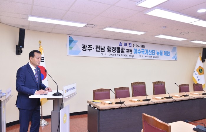 [파이낸셜경제=김예빈 기자] 광주·전남 행정통합 논의가 본격화되는 가운데 송하진 여수시의원(무소속·미평·만덕·삼일·묘도 지역구)이 통합의 전제 조건으로 여수국가산단을 중심으로 한 전남 동부권 산업 뉴딜을 공식 제안했다.