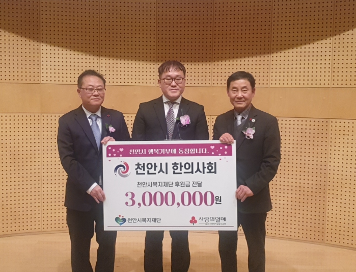 이운형 천안시복지재단 이사장은 “지속적으로 따뜻한 나눔을 실천해주신 천안시한의사회에 감사드린다”며 “소중한 후원금은 도움이 필요한 이웃들에게 전달할 것”이라고 말했다.