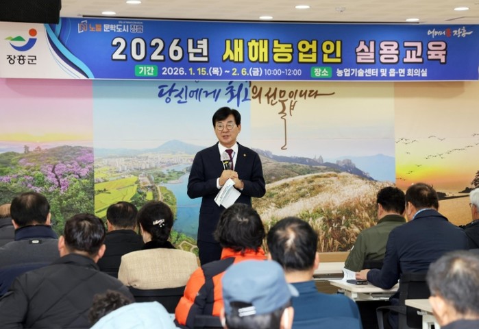 [파이낸셜경제=김예빈 기자] 장흥군은 AI를 활용한 기후변화 대응 영농계획 수립을 내용으로 한 ‘2026년 새해농업인 실용교육’이 농업인들의 높은 관심을 받고 있다고 전했다.