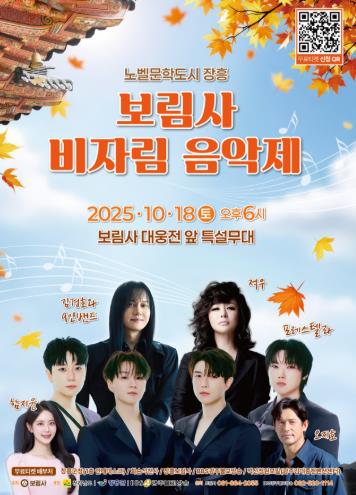 [파이낸셜경제=김예빈 기자] 장흥군은 오는 10월 18일 보림사에서 ‘노벨문학도시 장흥, 보림사 비자림 음악제’를 개최한다고 전했다.