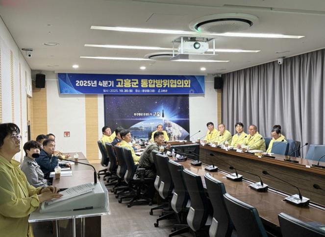 [파이낸셜경제=김예빈 기자] 고흥군은 지난 20일 군청 흥양홀에서 2025년 화랑훈련 연계 4분기 통합방위협의회 회의를 개최하고, 민·관·군·경·소방 간 통합방위태세를 점검했다고 밝혔다.