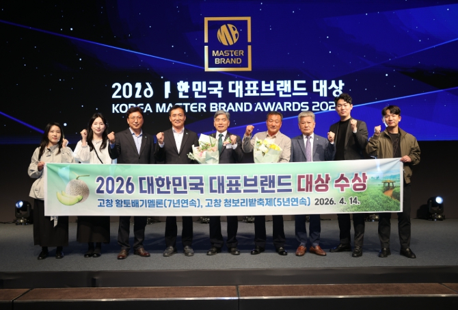 [파이낸셜경제=김예빈 기자] 고창군이 14일 서울 신라호텔에서 열린 ‘2026 대한민국 대표브랜드 대상’ 시상식에서 ‘고창 황토배기멜론’과 ‘고창 청보리밭축제’가 나란히 대상을 수상하며, 지역 대표 브랜드의 경쟁력을 입증했다.
