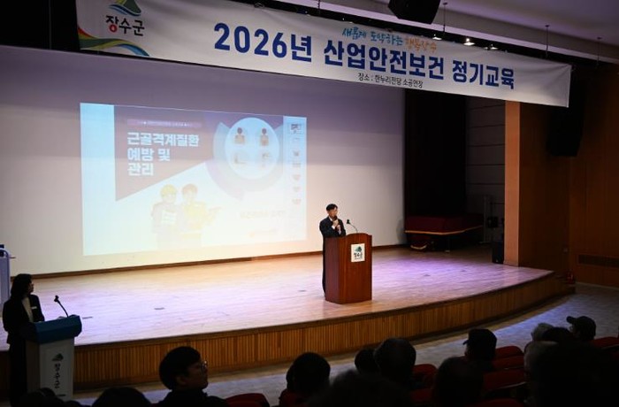 [파이낸셜경제=김예빈 기자] 장수군은 지난18일 한누리전당 소공연장에서 군 소속 현업 근로자 300여 명을 대상으로 2026년 1분기 산업안전·보건 근로자 정기교육을 실시했다고 밝혔다.