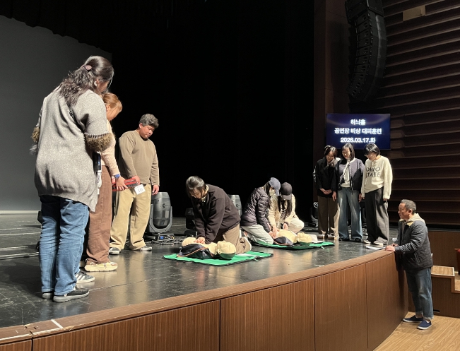 특히 무대파트감독, 하우스매니저, 하우스어셔, 방재실 안전관리자 및 방화관리자 등 현장 인력이 참여해 실제 상황을 가정한 대응 훈련을 실시했으며, 심폐소생술(CPR) 교육을 병행해 실질적인 대응 역량을 높였다.