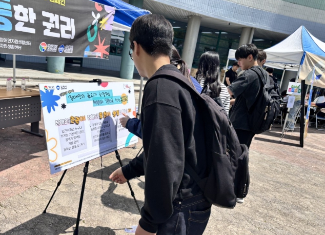[파이낸셜경제=김예빈 기자] (재)김해시복지재단 김해시장애인종합복지관(관장 류재복)은 김해장애인복지기관네트워크 합동으로 지난 13일부터 15일까지 3일간 지역 내 대학생들을 대상으로 장애인식개선 캠페인 ‘동정이 아닌, 동등한 권리’을 진행했다.